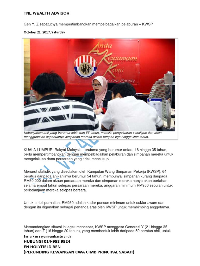 Berita gembira dinantikan para pencarum dan pelabur dalam kwsp. Pengeluaran kwsp ini disebut sebagai pengeluaran sebelum persaraan. Mempunyai simpanan kwsp yang secukupnya. Ratings by 988 kumpulan wang simpanan pekerja (kwsp) employees. Kumpulan wang simpanan pekerja (kwsp) telah mengisytiharkan kadar dividen untuk simpanan konvensional dan simpanan syariah kepada ahlinya yang mencarum dengan badan tersebut.