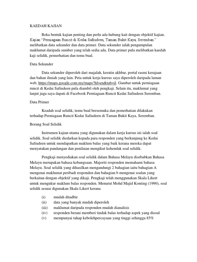 Kaedah Kajian from imgv2-1-f.scribdassets.com Dalam kaedah ini, borang soal selidik diperlukan untuk memudahkan lagi kajian yang hendak dijalankan. Kaedah soal selidik sering digunakan untuk mengutip data dalam kajian tindakan secara formal dan sistematik. • cara yang digunakan untuk mengumpulkan data. 5 calon membaca soal selidik foto tony ntumba monusco oleh. Borang soal selidik kajian mp3 & mp4. Dapatan kajian yang diperolehi menunjukkan terdapat pelbagai kaedah yang efektif dipraktikkan dalam sistem ini. Portal mypt3.com telah menjadi sumber rujukan saya untuk menambah bahan kajian untuk dijadikan rujukan tambahan dalam tugasan sejarah ini. Penggunaan borang soal selidik perlu melalui strategi mereka.