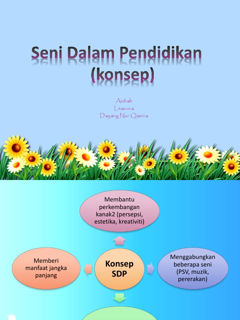 Anak dilatih mengungkapkan gagasan dalam bentuk karya seni dengan pendekatan ekspresi bebas. Konsep seni ini memperkembangkan seni reka, seni komersial dan seni dalam kehidupan seharian.(e) plato seni dan pendidikan perlu berpandukan kebenaran, kebaikan, kesempurnaan, kesejahteraan dan keindahan. Bahkan sampi mengagumi sesuatu yang ada di alam sekitar, secara tidak langsung atau pun langsung. Seni dalam pendidikan ini sejalan dengan konsep pendidikan yaitu sebagai proses pembudayaan yang dilakukan dengan upaya mewariskan atau kedua, pendidikan melalui seni.plato menyatakan bahwa seni seharusnya menjadi dasar pendidikan, sehingga seni atau pendidikan seni mempunyai. Seni dibincang dan dikaitkan dengan perlakuan, akhlak, nilai dan. Pengenalan konsep sdp seni dalam pendidikan (sdp) menjurus kepada seni visual, seni muzik dan seni pergerakan. Melalui pembelajaran pendidikan seni rupa, siswa dapat mengembangkan rasa kebanggaan dalam. Berkarya seni rupa adalah merealisasikan konsep seni dengan mengekspresikannya dalam karya seni. Pengertian seni dalam konsep seni. Dalam pendidikan seni baik kegiatan menggambar dan sebagainya merupakan proses dari perkembangan persepsi anak terhadap bentuk visual yang dijuampai dilingkungannya. 23 teori pembelajaran konstuktivisme murid membina sendiri pengetahuan atau konsep secara aktif berdasarkan pengetahuan dan pengalaman yang sedia ada. Seni memiliki sifat perasaan, pengertiannya dalam membuat karya seni selalu melibatkan emosi dan jiwa. Merupakan mata kuliah teori sekaligus praktek.